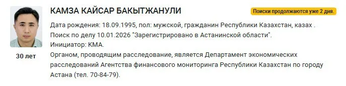 Агентство по финансовому мониторингу Казахстана объявило в розыск блогера и актера Кайсара Камзу. Дело зарегистрировано 10 января и ведется Департаментом экономических расследований АФМ по городу Астана.