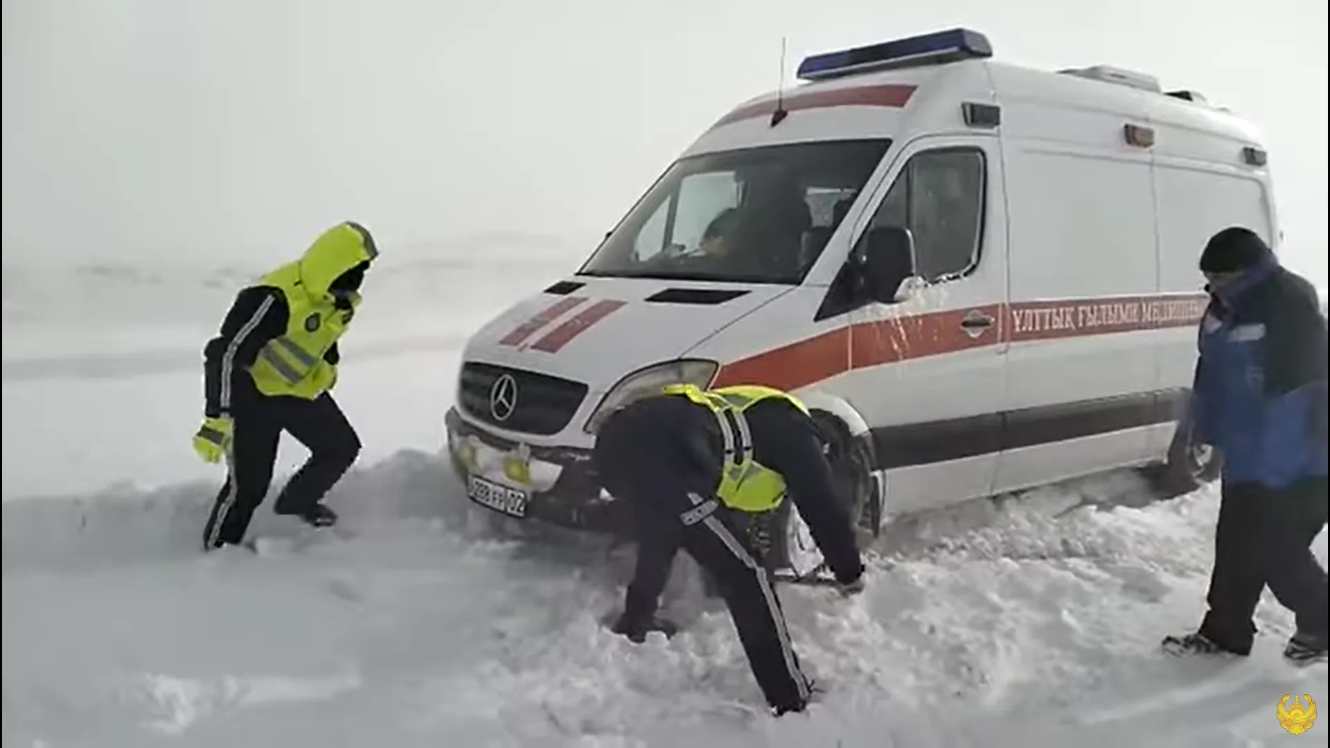На трассе Караганда-Астана полицейские помогли водителям безопасно проехать сложные участки дороги во время сильного бурана.