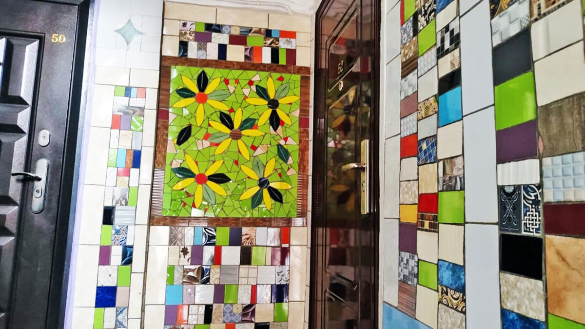 В Караганде, по адресу улица Терешковой, 34, во дворе обычного серого здания наблюдаются изменения: на его стенах начинают появляться различные композиции из кусочков кафеля. Все это стало возможным благодаря стараниям одного человека – Любови Першуковой.