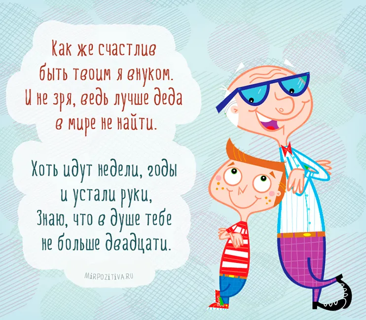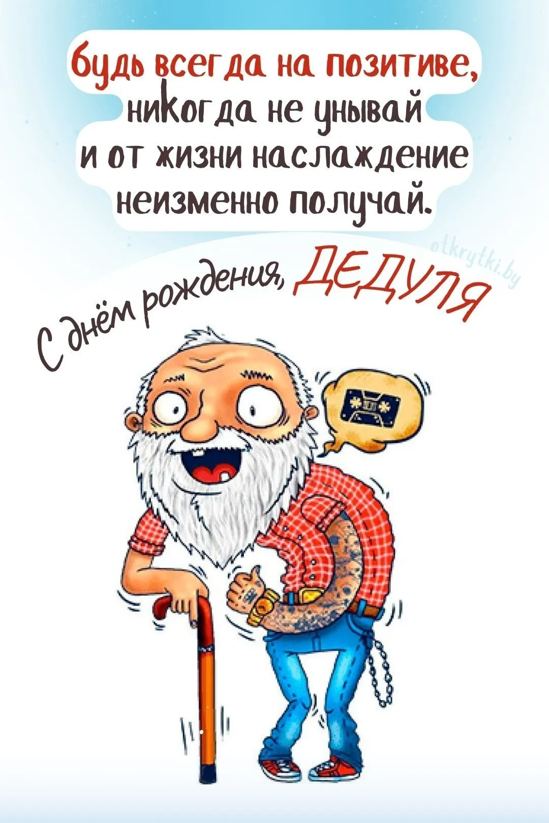 И хоть цифры в паспорте растут, дедушки, кажется, только прокачивают чувство юмора и навыки никогда не унывать. Поэтому прикольные поздравительные открытки — идеальный способ добавить празднику легкости, тепла и доброго смеха.