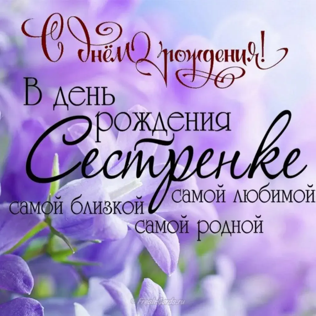 Моя любимая сестра, сегодня твой день, и я хочу обнять тебя так крепко, как будто мы снова маленькие. Ты — часть моего сердца, часть моего детства, часть всех моих воспоминаний, которые я берегу. Пусть судьба будет к тебе доброй, пусть мечты сбываются легко, а счастье приходит без предупреждения — просто потому что ты этого заслуживаешь.