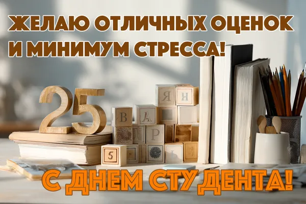 Поздравляю студентов! Пусть каждый день будет полон энергии, а ночи перед сессией — только продуктивными и вдохновляющими. Желаю уверенности в себе и удачи во всех начинаниях.