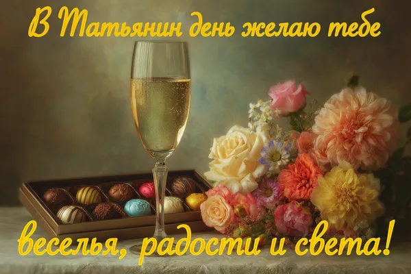 С Днем Татьяны! Пусть здоровье будет крепким, энергия — неиссякаемой, а счастье живет рядом каждый день. Пусть каждый момент приносит вдохновение и радость.