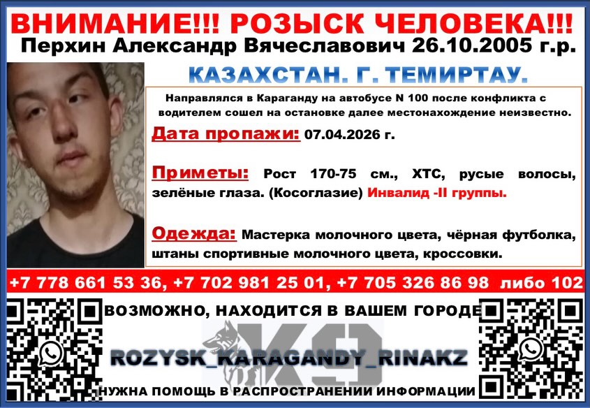 Как сообщают пользователи социальных сетей в сообществе «Розыск», конфликт возник между молодым человеком и водителем автобуса из-за неуплаты за проезд. Пассажир держался за поручень и пытался убедить водителя не высаживать его. При этом никто из других пассажиров не попытался его защитить. Вся сцена была записана на видео и опубликована в Instagram. Ушедший с автобуса человек не был найден, а его имя — Александр Перхин, инвалид II группы, который направлялся в Караганду к матери.