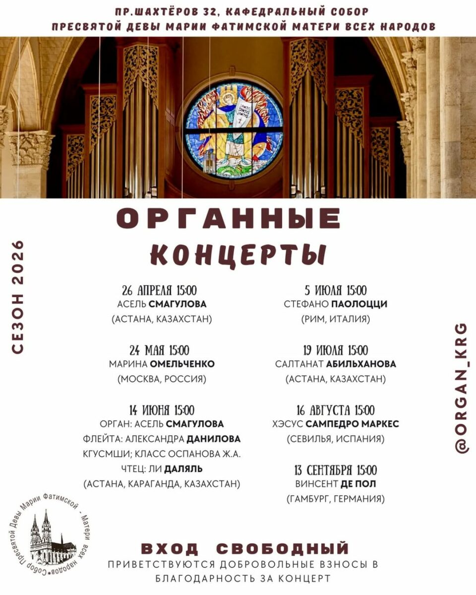 Кафедральный собор Пресвятой Девы Марии Фатимской, Матери всех народов, представил график органных концертов.